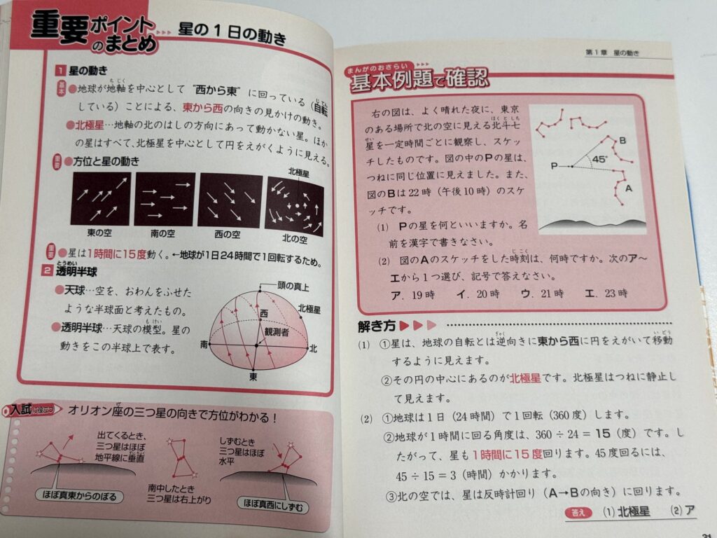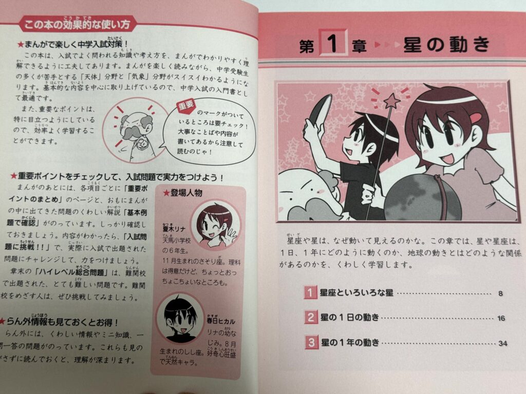 中学受験の理科で出題される「月の満ち欠け」や「星座」などの具体的な知識を学ぶ教材としては、直接的な内容は少ないです。