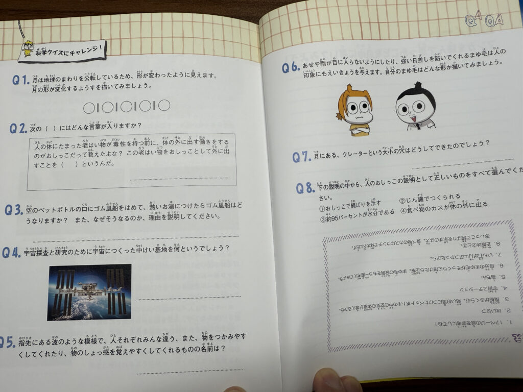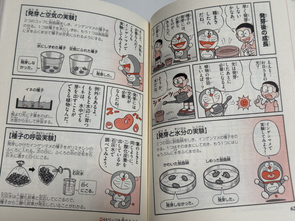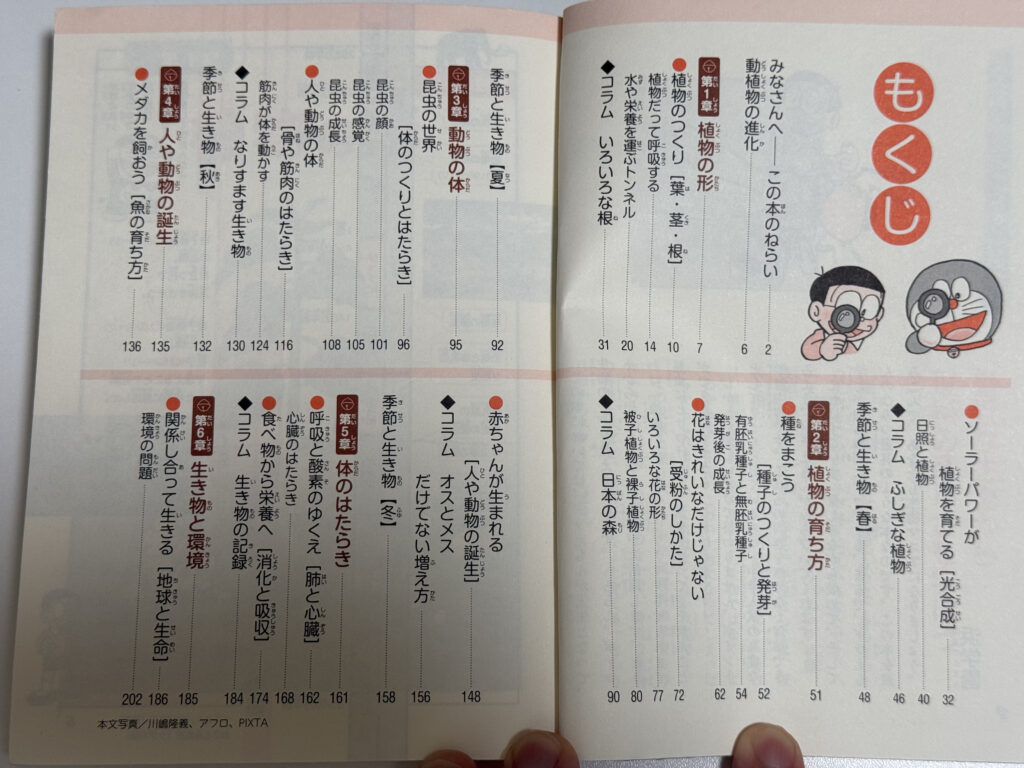 人気キャラクターが案内役なので、「勉強感」をあまり感じずに読み進められます。「ドラえもんと一緒に問題を考える」感覚で楽しめ、理科好きになるきっかけに。