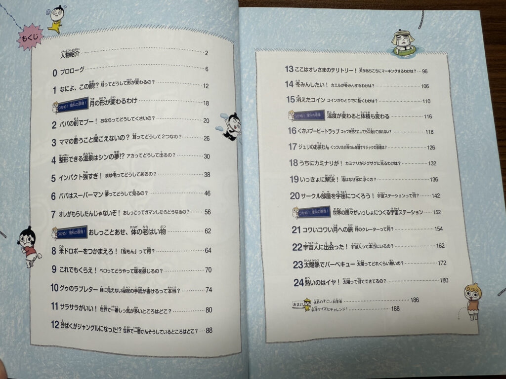 たとえば与圧服(宇宙服)の構造や月面での重力の違い、宇宙酔いへの対策など、宇宙科学に関する具体的な情報が豊富です。夢に向かって努力する兄弟の姿はお子さんの心にも響くはず。
